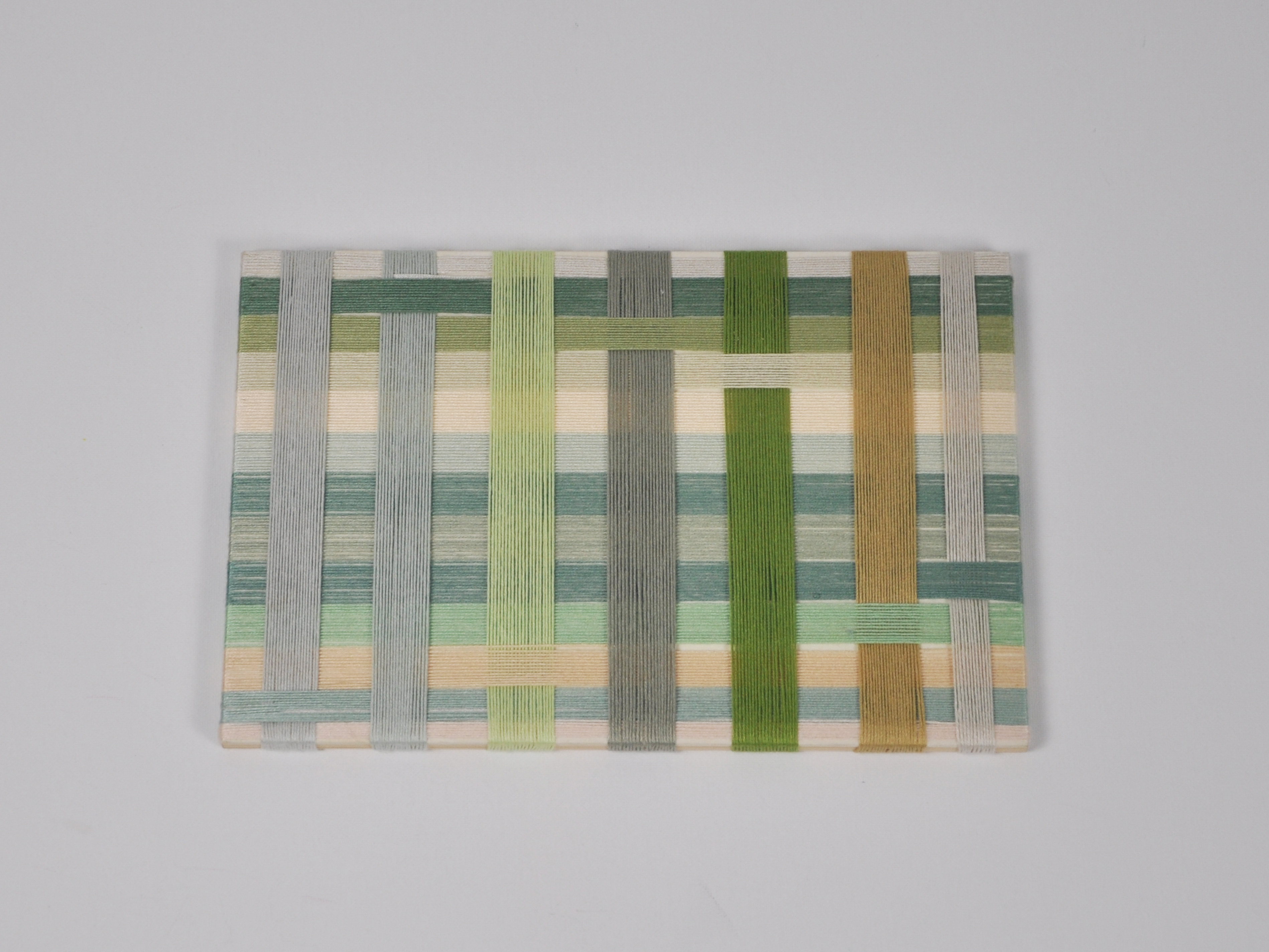 Living Grid expands the language of Night Grid into a larger, more intricate textile field. Here, cotton strings are woven and interlaced into a loose, breathing lattice that lifts off the dark backing like a fragment of living architecture. Vertical and horizontal paths thicken, bend, and loosen, giving the grid a bodily, almost topographical presence.